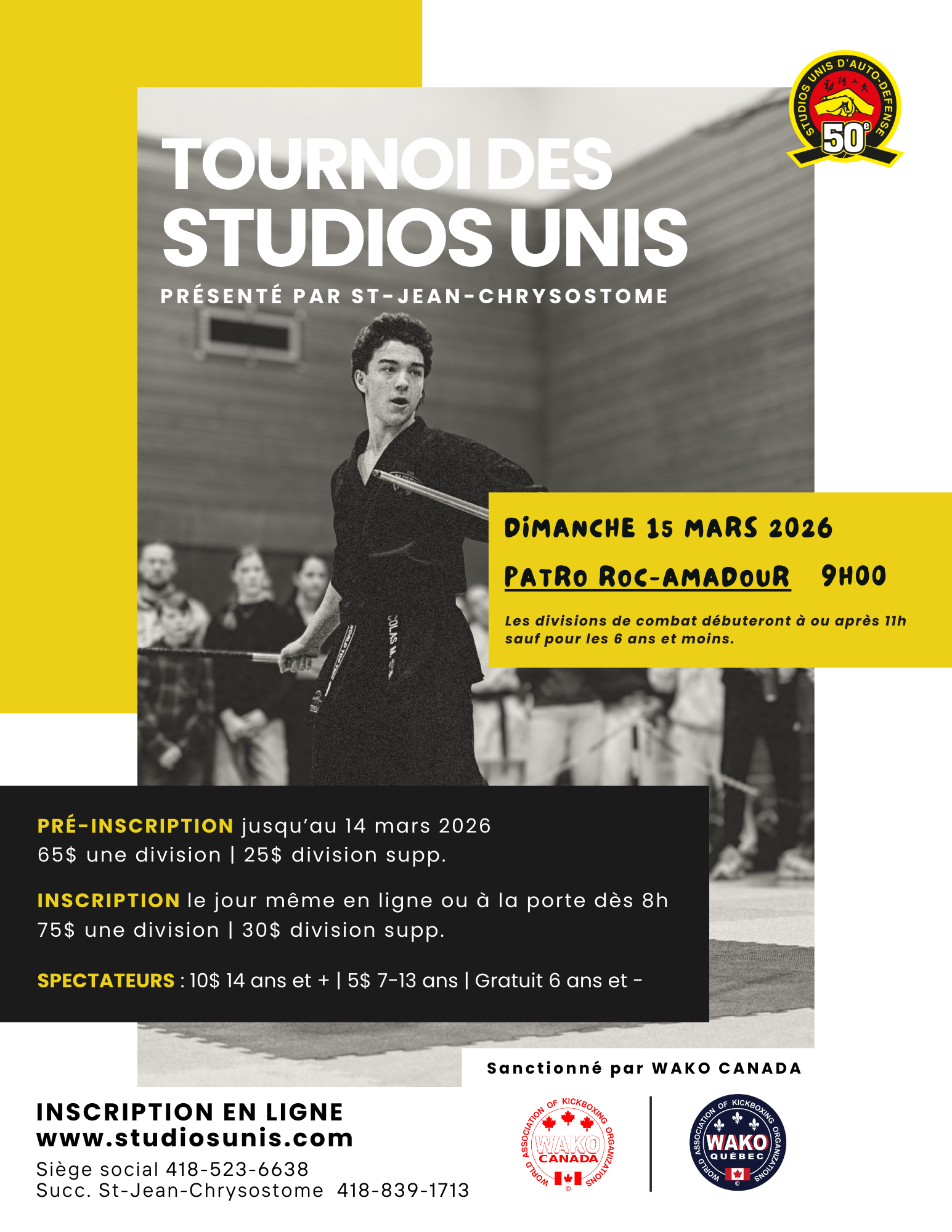 PRÉ-INSCRIPTION jusqu’au 14 mars 2026 | 65$ une division / 25$ division supplémentaire